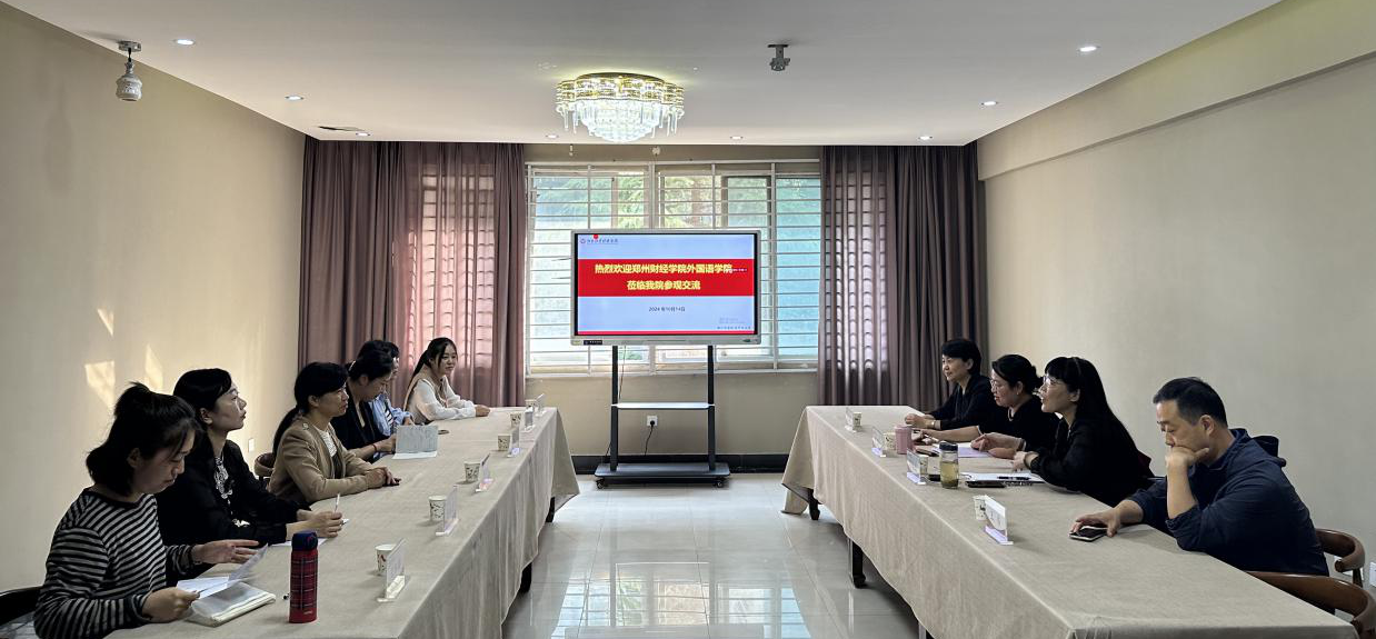 10月14日,郑州财经学院外国语学院黄雪娟副院长一行到我校外国语学院调研交流,并就商务英语专业建设、课程设置、实践教学等内容展开交流座谈。外国语学院副院长马媛媛、巩坚等出席座谈会议。