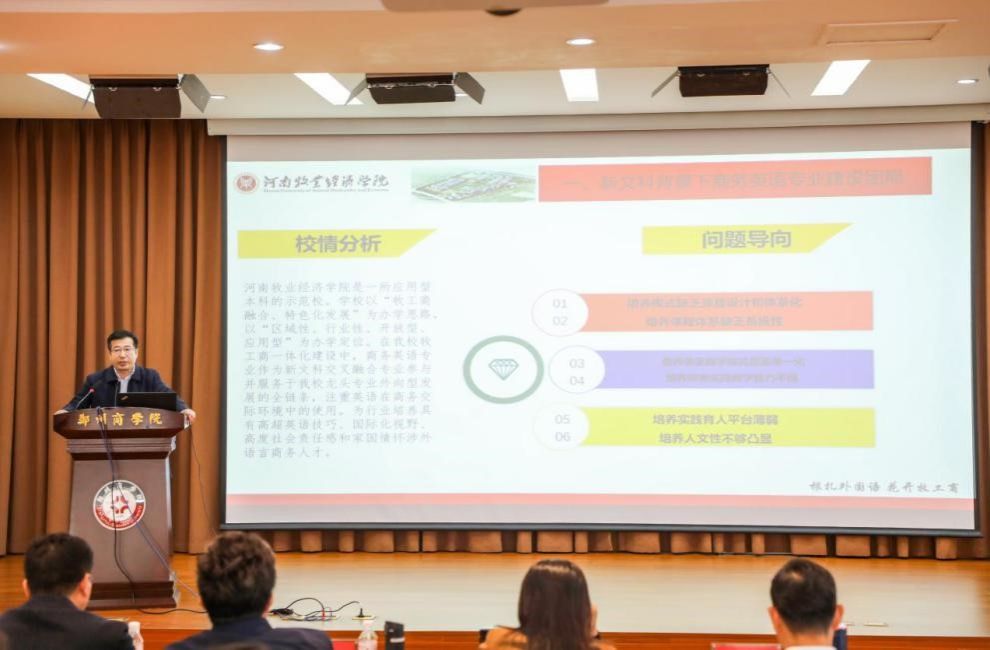 论坛上,闻华以《商务英语专业改革暨课程建设》为题,详细阐述了新文科背景下河南省商务英语专业人才培养面临的共性问题和我校的解决方案,介绍了我校商务英语专业改革创新思路和实现路径以及商务英语改革取得的经验成果。同时,结合其主持的河南省本科高校研究性教学示范课程《商务英语阅读》建设心得,为与会代表分享了该课程的设计思路、理论依据和课程建设方案等,受到与会嘉宾的广泛认可和称赞。