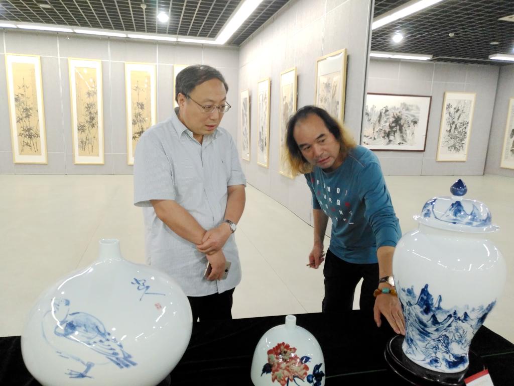 校党委书记穆瑞杰听取王学俊介绍瓷器绘画工艺 |