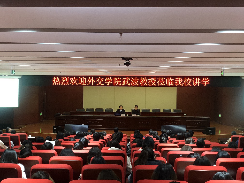 11月26日下午,应我校外国语学院邀请,外交学院武波教授到我校作题为“翻译中国——内容、原则及方法”的讲座。外国语学院300余名师生在龙子湖校区图书馆报告厅共同聆听了讲座,讲座由外国语学院院长陈延潼主持。
