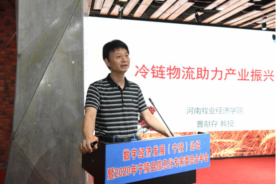 2020年9月19日,物流与电商学院院长曹献存教授受邀参加宁陵县数字经济发展论坛暨2020年宁陵县信息化专家委员会年会。省市场监督管理局综合规划处、科技财务处处长田文才,商丘市政务服务和大数据管理局调研员张建杰,宁陵县委副书记袁其杰、县委常委、组织部部长蒋云兰、县委常委、副县长杨建文、县人大常委会副主任张其太、县政协副主席王伟出席了本次活动。