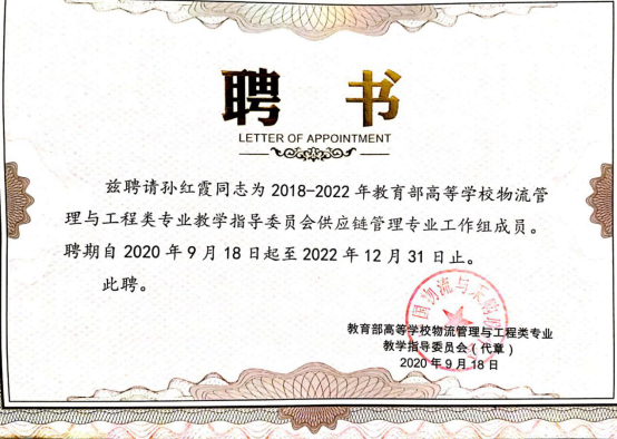 会上,于晓胜博士作《应用型本科院校物流管理一流专业建设的五力模式实践》主题报告,并受聘担任全国物流教指委冷链物流专业工作组副组长;孙红霞博士受聘供应链管理专业工作组成员。此次工作组改选,河南省高校共有7位专家被聘为工作组成员,于晓胜是全省唯一一个受聘副组长以上高校工作人员。