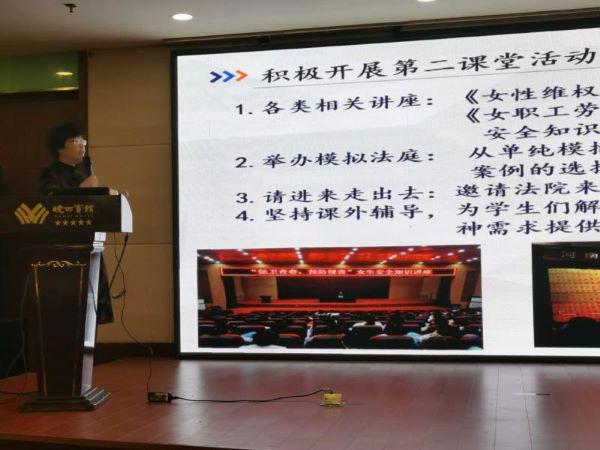 白慧颖教授以《“四自”精神在法学课程教学中的渗透与融合》为题,将近几年“四自”精神教育在我校法律课程的实施情况进行了梳理和总结,并对法学专业的课程思政提出了自己的意见和建议,得到了与会人员的充分肯定。