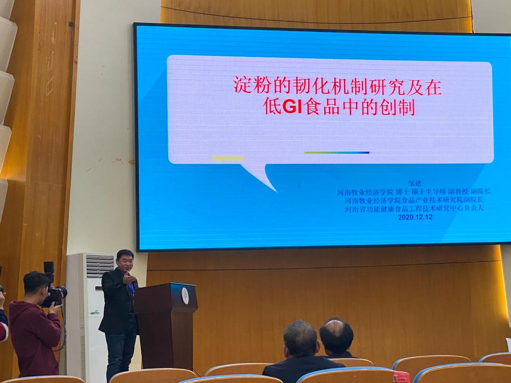 12月12日-13日,河南省农产品加工与贮藏工程学会第七届年会在郑州工程技术学院召开,本届年会的主题是“大健康产业背景下的农产品加工与贮藏工程”。我校食品与生物工程学院副院长邹建博士受邀做题为“淀粉的韧化机制研究及在低GI食品中的创制”的学术报告,受到与会专家学者的高度评价。