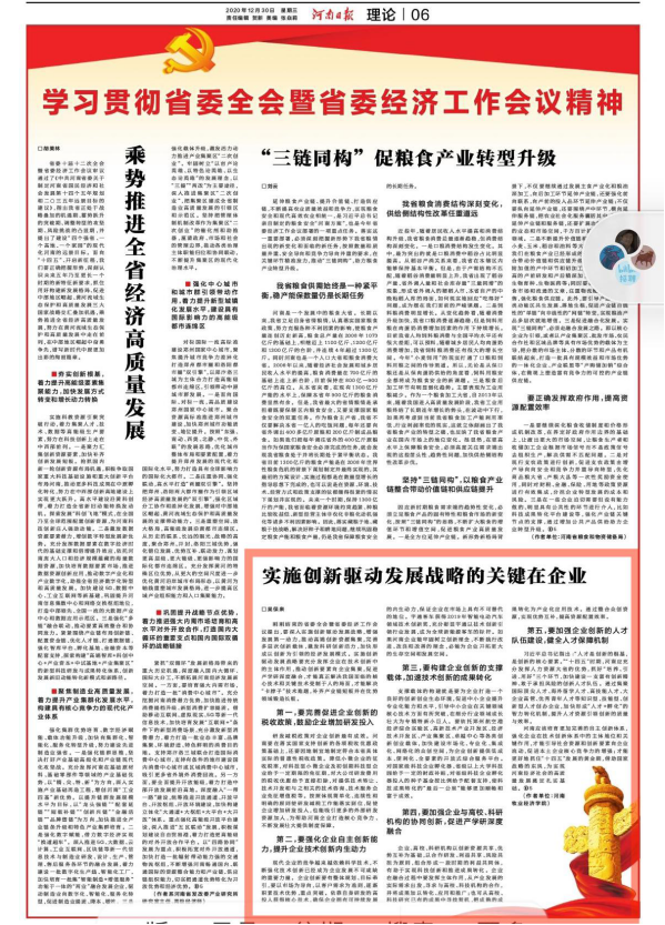 2020年12月30日,《河南日报》(理论版)刊发我校马克思主义学院吴保来博士文章《实施创新驱动发展战略的关键在企业》。