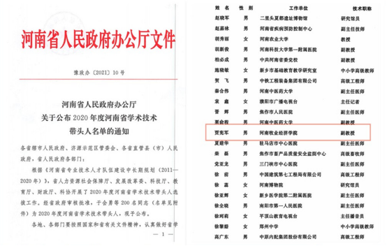 近日,河南省人民政府办公厅发布《河南省人民政府办公厅关于公布2020年度河南省学术技术带头人名单的通知》,正式公布了2020年度“河南省学术技术带头人”名单,金融与会计学院副院长贾宪军博士荣获“2020年度河南省学术技术带头人”荣誉称号。