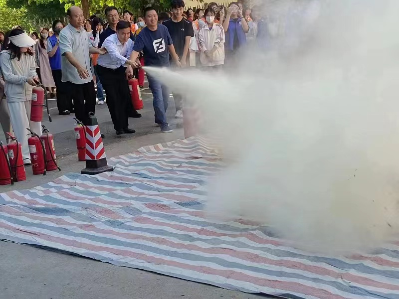 郑州市消防协会工作人员为师生员工讲解消防应急疏散知识及注意事项,解读《应急疏散演练预案》以及演练主要环节要求,并宣讲了校园消防安全基本知识、干粉灭火器使用方法和学生公寓、实验室等消防重点部位防火注意事项。