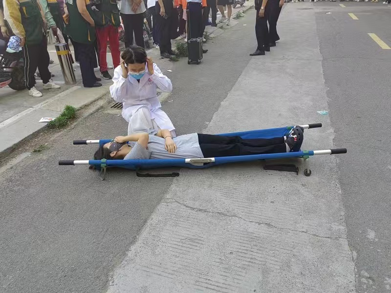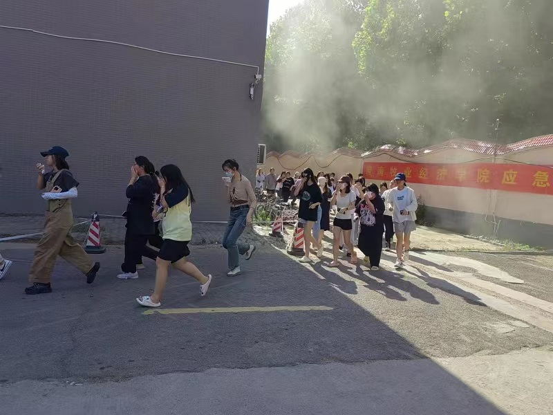 各参与部门按照要求,积极组织,紧密配合,学生干部和保安人员负责疏散路线引导,医务人员和应急队伍负责现场保障,安全保卫人员负责营造演练场景。参与活动的师生,在发现火情后,第一时间向相关二级学院值班人员和学校警务中心报告,并立即组织师生员工疏散逃生;在灭火实战演练中,工作人员向全体参演人员现场演示火灾扑救技能,指导师生员工进行灭火器使用与初起火灾的扑救演练。校医院医务人员紧张有序的开展医疗救助。