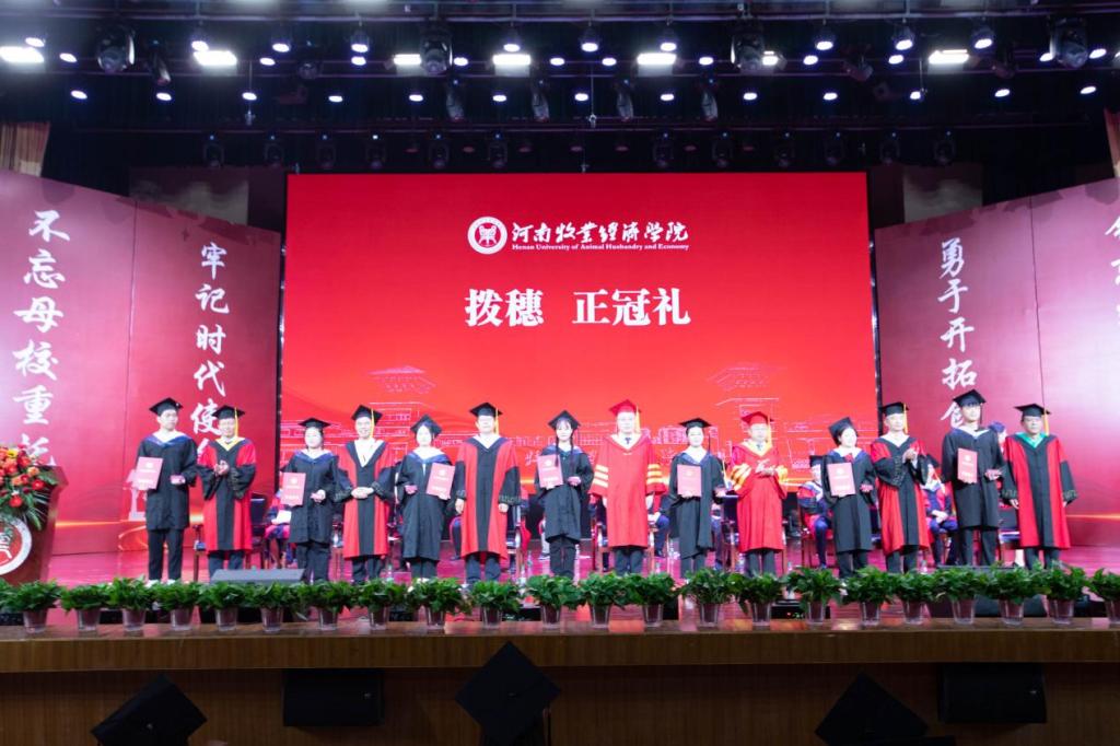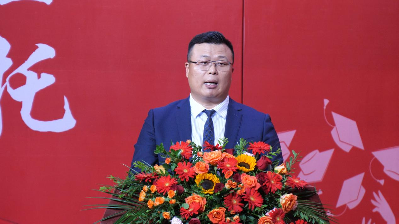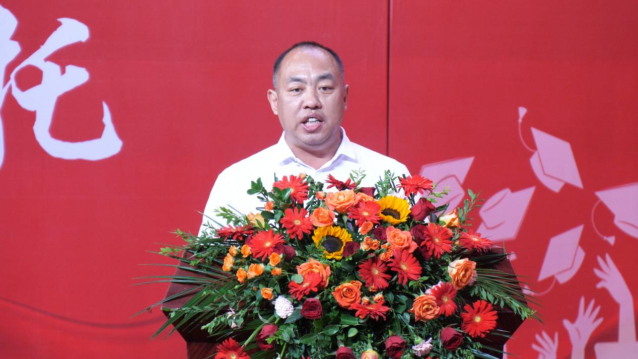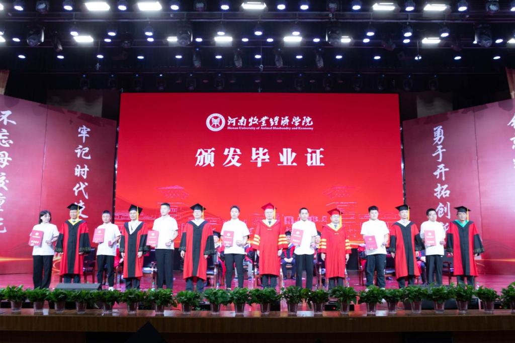 2001届家庭养殖专业毕业生、河南省奶牛生产性能测定中心主任、博士生导师张震,2007届法律事务专业毕业生、现任泊伊美汇董事长吴栋作为校友代表分别进行发言。他们深情回顾了在母校的学习成长经历,并希望学弟学妹们坚持梦想、勇挑重担,持之以恒、精益求精,以青春之我、奋斗之我,为民族复兴铺路架桥,为祖国建设添砖加瓦!