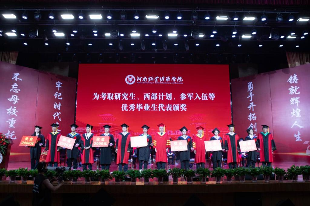 校领导为考取研究生、西部计划、参军入伍等优秀毕业生代表颁发奖金