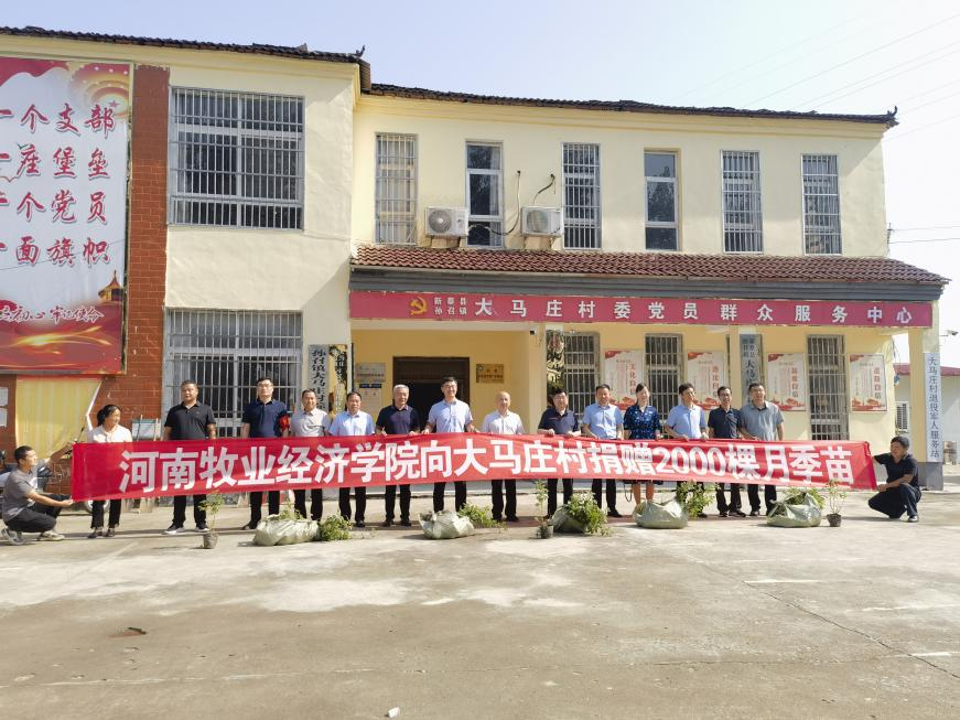 罗士喜一行代表学校向大马庄村捐赠2000棵月季苗