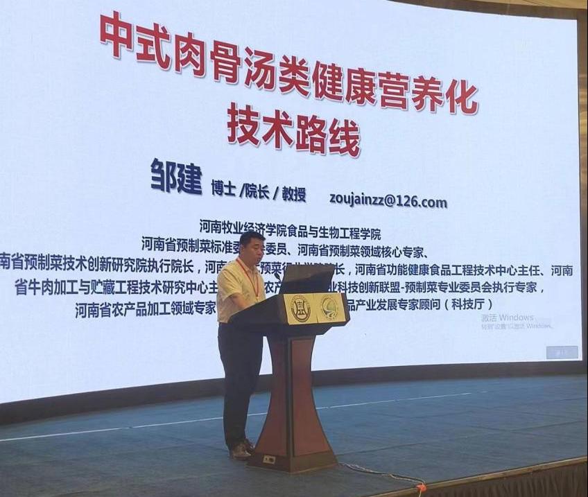 论坛上,邹建作了题为《中式肉骨汤类健康营养化技术路线》的学术报告,他从工艺、品质、营养、产业等多个角度对中式肉骨汤的加工生产进行详细阐述,并对中国预制菜产业的现状和发展前景进行了深入剖析。