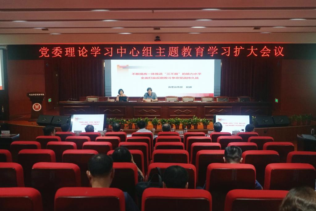 为扎实开展学习贯彻习近平新时代中国特色社会主义思想主题教育,全面贯彻落实党的二十大精神,持续强化学校党风廉政建设,增强党员领导干部的纪律规矩意识和廉洁自律意识,7月6日下午,校党委理论学习中心组在龙子湖校区图书馆一楼报告厅举行主题教育学习扩大会议,特邀省委宣传部理论教育讲师团二级调研员赵琳作专题报告,校党委理论学习中心组成员、学校副处级以上干部参加学习,会议由校党委副书记李俊杰主持。