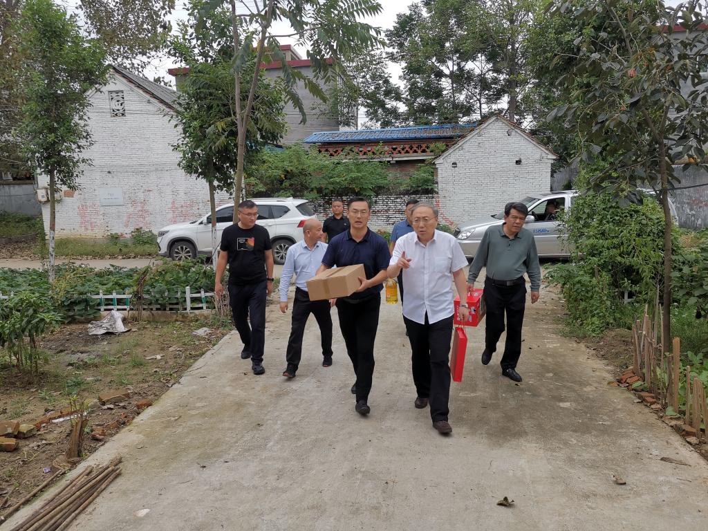 秋风送爽,丹桂飘香。值此中秋、国庆“双节”来临之际,9月27日,校党委书记穆瑞杰、副校长杨国宇一行赴我校定点帮扶的新蔡县孙召镇大马庄村,实地调研乡村振兴帮扶建设情况,走访慰问重点监测户。校党委办公室主任宋华凯、我校派驻大马庄村第一书记杨军等陪同调研。