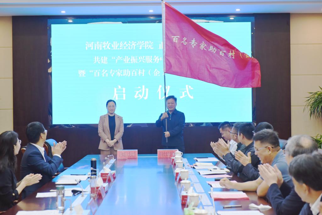 仪式上,穆瑞杰、张燕为“产业振兴服务中心”揭牌。杨国宇、张燕代表校地双方签署共建“产业振兴服务中心”合作协议。张燕为我校“双百”工程专家代表授“双百”工程旗。
