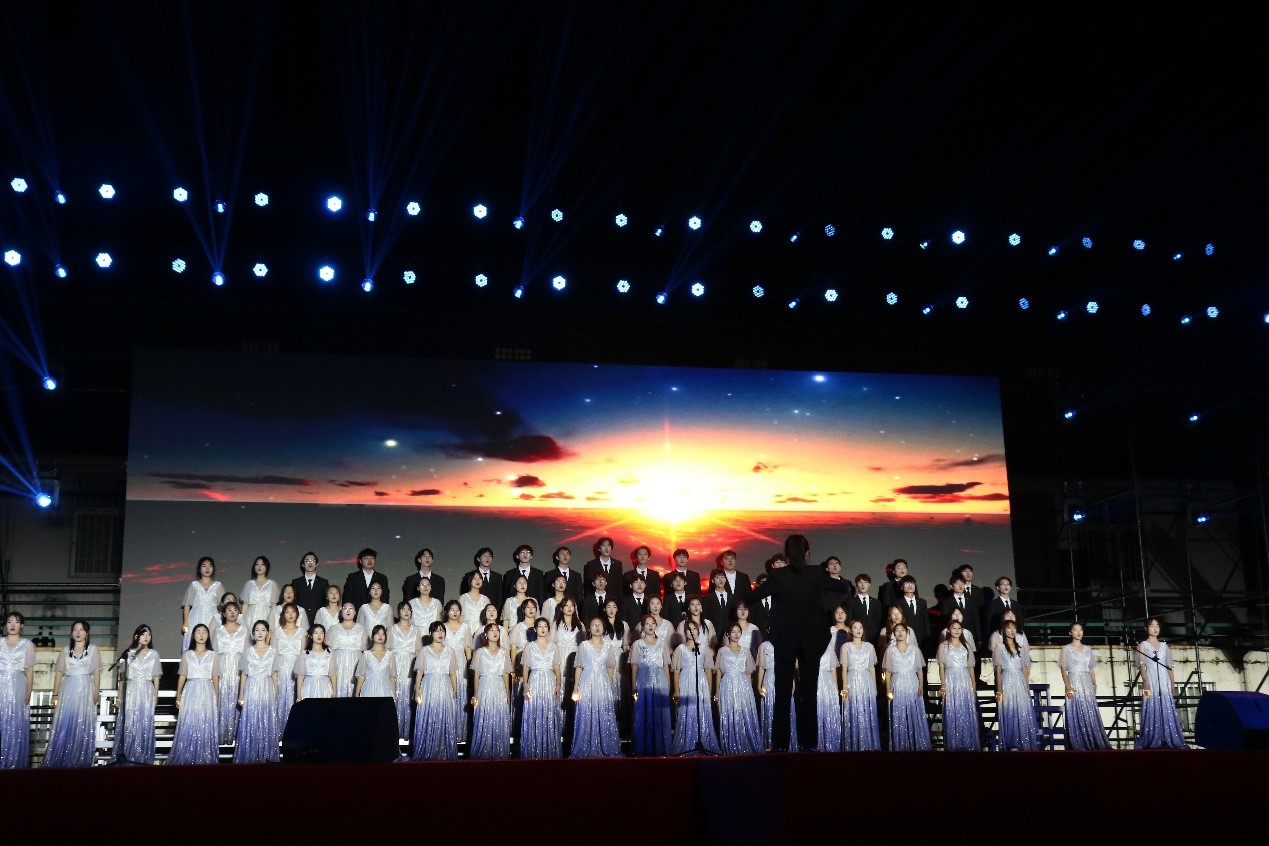 青春澎湃的开场曲,瞬间引爆现场氛围;婉转悠扬的歌曲串烧,点燃了现场和屏幕前的每一个人;歌伴舞《万疆》用耀眼的中国红激荡着同学们的心怀;离退休职工工作处的舞蹈《我的祖国》告诉同学们热爱可抵岁月漫长;舞蹈《永恒的纪念》致敬了中华民族伟大复兴征程上先行者们将青春热血融入祖国建设。第二篇章“相约青春 梦想启航”在歌声中拉开序幕,歌曲《想把我唱给你听》激发着同学们去勇敢逐梦;《青春故事汇》向同学们分享了优秀学生代表的青春故事;爵士舞蹈活力四射;器乐合奏用优美的旋律演绎出时代青年的热忱笃定;《为祖国干杯》传递着同学们对祖国的热爱与追随,也表达了广大师生对学校未来发展的美好祝愿。第三篇章中,动感有力的舞蹈节奏将氛围推向高潮;走秀《古今霓裳》再现了现代与古代瑰丽文化的碰撞;《祖国万岁》充满了对祖国美好明天的殷切希望与祝福;合唱《星辰大海》唱出了对未来以及对梦想的执着追求和向往。晚会在《我和我的祖国》合唱声中拉下帷幕。