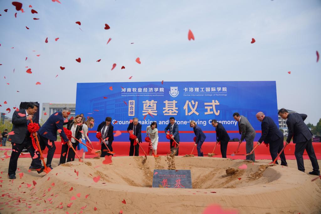 穆瑞杰对安黛文和维罗妮卡的到访表示热烈欢迎,对省教育厅和省政府外办长期以来对学校的支持表示感谢。他在卡洛理工国际学院综合楼奠基仪式上讲到,卡洛理工国际学院的顺利招生,离不开安黛文大使和维罗妮卡·坎贝尔校长的关心关注和倾心付出,两位客人亲自率团莅临开学典礼现场,更体现了对卡洛理工国际学院的关注和支持。他表示,我们将继续加大力度支持卡洛理工国际学院的建设,与爱尔兰东南理工大学共同努力,把卡洛理工国际学院建设成河南省一流的中外合作办学机构,为社会培养具有家国情怀与国际视野的优秀国际化人才;继续加强与爱尔兰东南理工大学的全方位合作,通过合作办学这个平台,拓展科学研究、学科建设、师资培养和人文交流等领域的国际交流与合作,进一步促进学校的国际化发展。他寄语同学们要利用好国际教育资源,培养适应国际化需要的能力;要注重知识的运用和创新,通过深入探究,提升全面发展的核心素养;要用多元的视角看待世界、感知世界,大胆参与体验,铸就宽广人生。(王京哲/文 王京哲 聂丹 王伟/图)