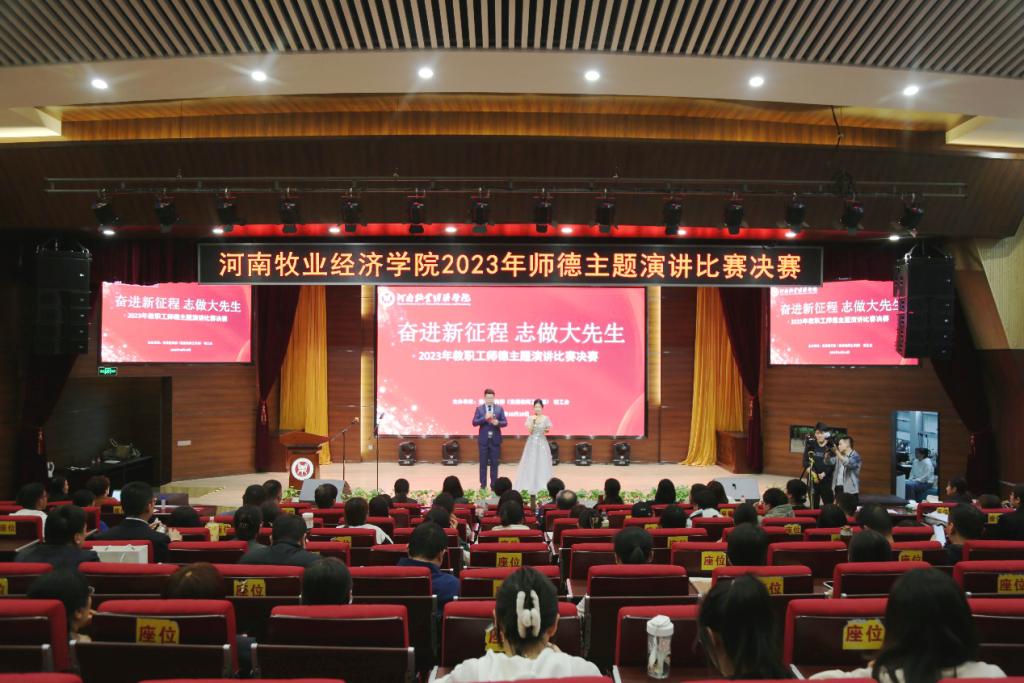 10月19日,由党委宣传部(党委教师工作部)、校工会联合主办的“奋进新征程 志做大先生”师德主题演讲比赛决赛在合100报告厅圆满落幕。校党委书记穆瑞杰、党委副书记李俊杰出席活动。各职能部门、各学院负责人及师生代表到场观赛。