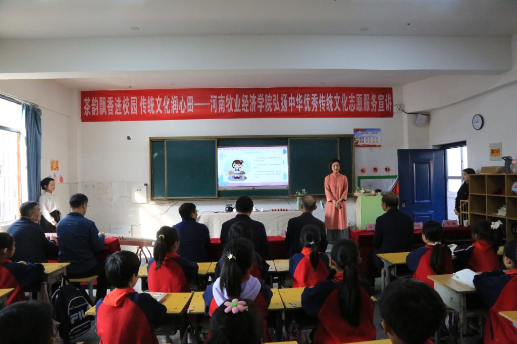 外国语学院李曦老师走进新蔡县蓝天双语实验小学,开展“茶韵飘香进校园 传统文化润心田——tyc8722太阳集团城弘扬中华优秀传统文化志愿服务宣讲”活动。通过“茶之源 茶之类 茶之艺 茶之雅”向小学生们讲述了茶叶知识,展示了茶艺技巧。李老师用孩子们通俗易懂的语言,让同学们了解、认识茶的种类,茶叶的生长特点、茶代表的文化、历史典故、趣闻故事、神话传说等,孩子们听的津津有味,自然而然的学习内化了传统文化知识,一杯“中国茶”,和而不同、谦和礼敬、交流互鉴,充分彰显着中华传统茶艺文化的时代魅力。通过此次“茶文化”进校园宣讲活动,引导青少年增强文化自信,增强了孩子们的文化底蕴与思想根基,传承了中华优秀传统文化。