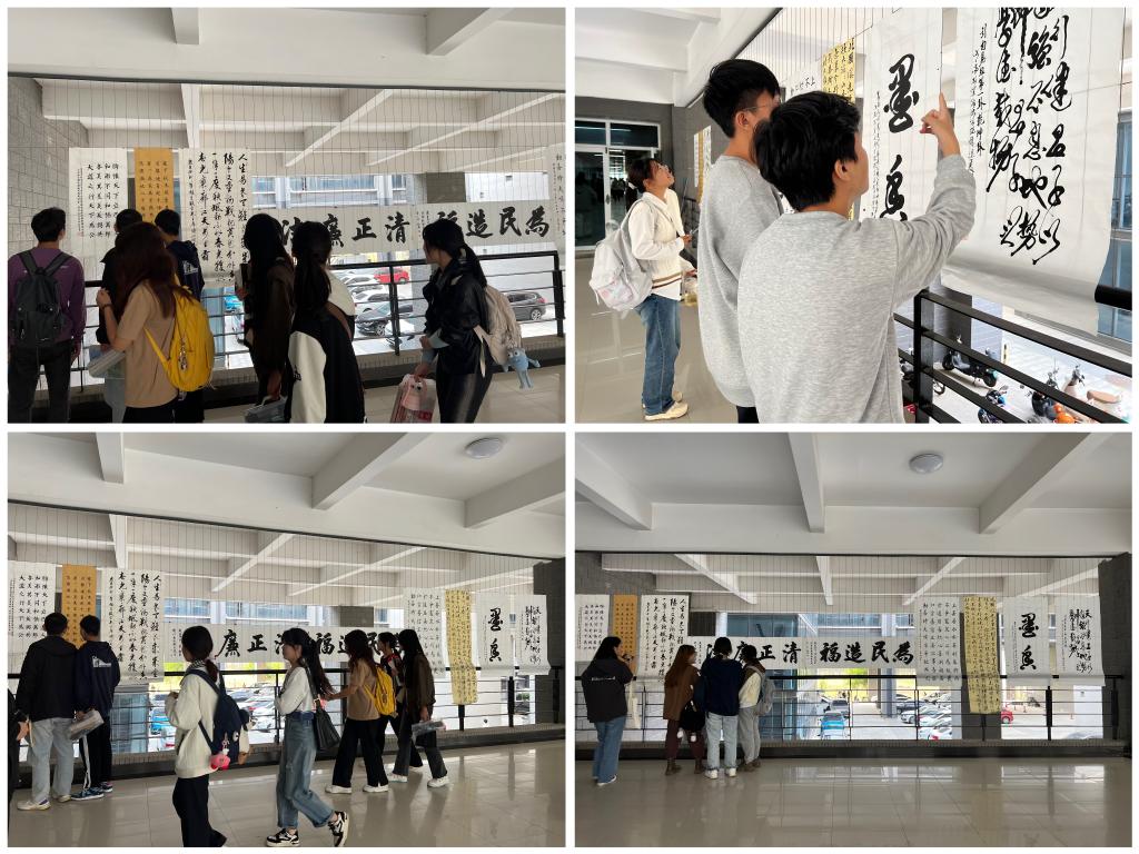 小小连廊,一时间吸引了大批学生驻足观看。这个平时学生往返经过的普通走廊,成为老教师与青年学生书法交流的文化平台,既增进了同学们对我校退休教职工业余文化生活的了解,同时也充分展示了我校退休教职工爱好生活积极向上的精神面貌。(离退处供稿)