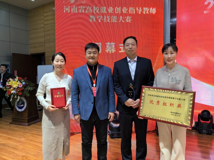 近日,河南省高校就业创业指导教师教学技能(本科组)大赛圆满落幕,我校选派的参赛教师就业创业中心李翔宇荣获金奖,学工部李伟静荣获铜奖,学校荣获大赛优秀组织奖。