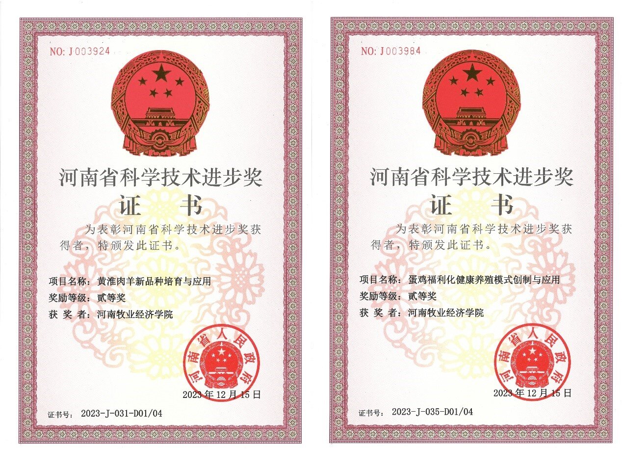 近日,河南省人民政府印发《关于2023年度河南省科学技术奖励的决定》(豫政〔2023〕41号),公布了2023年度河南省科学技术进步奖获奖名单,我校副校长席磊教授主持的《蛋鸡福利化健康养殖模式创制与应用》项目、动物科技学院权凯教授主持的《黄淮肉羊新品种培育与应用》项目均荣获河南省科学技术进步奖二等奖。
