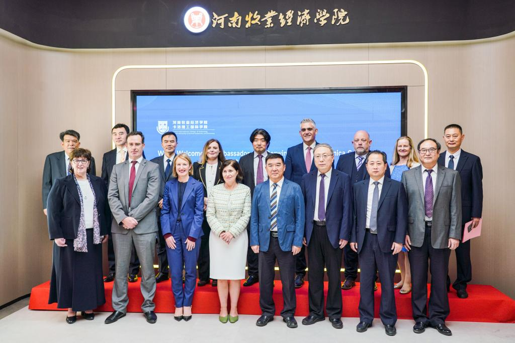 2023年,爱尔兰驻华大使安黛文率团访问我校。中爱嘉宾共同出席了卡洛理工国际学院综合楼奠基仪式与卡洛理工国际学院开学典礼。学校近年来持续加快和扩大教育对外开放,深入推进“一带一路”教育行动,在与爱尔兰东南理工大学的共同努力下,力争把卡洛理工国际学院建设成河南省一流的中外合作办学机构,为社会培养具有家国情怀与国际视野的优秀国际化人才。通过合作办学这个平台,拓展科学研究、学科建设、师资培养和人文交流等领域的国际交流与合作,进一步促进了学校的国际化发展。学校师生也将利用好国际教育资源,深入探究,用多元的视角看待世界、感知世界,培养适应国际化需要的能力,提升全面发展的核心素养。