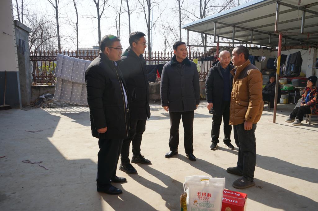 癸卯岁末,甲辰将至,寒意未销,冬阳如春。1月26日,我校党委副书记姚毅代表校党委、校行政在党委组织部、宣传部等部门相关同志的陪同下,赴新蔡县孙召镇大马庄村调研当地乡村振兴工作开展情况,看望学校省派驻村“第一书记”杨军,走访慰问贫困群众。新蔡县委常委、组织部长葛鹏,新蔡县人大副主任、孙召镇党委书记田坤琦,孙召镇镇长陈东伟等陪同调研慰问。