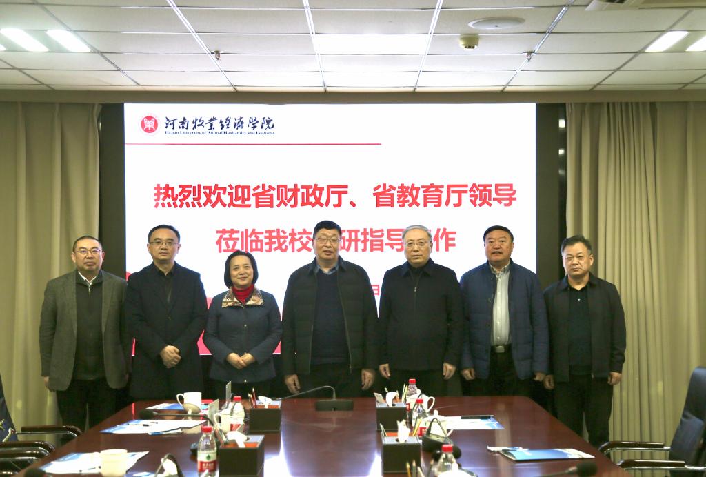 2月29日,省财政厅二级巡视员、资产管理处处长王治中,教育厅财务处处长王鹏一行6人来我校调研指导工作。校党委书记穆瑞杰、校长尹新明、副书记姚毅、副校长黄良杰、席磊参加会议,相关职能部门负责人陪同参会,会议由尹新明主持。