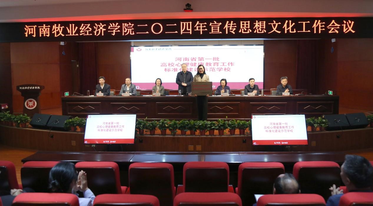 校党委书记穆瑞杰为荣获“河南省第一批高校心理健康教育工作标准化建设示范学校”的单位授牌