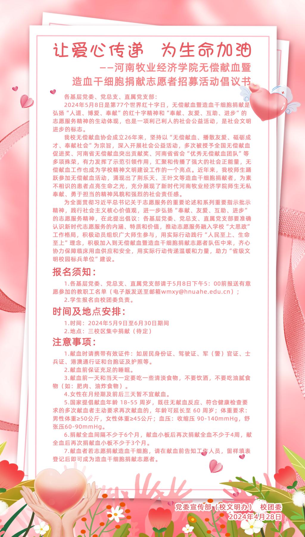 让爱心传递 为生命加油 —— tyc8722太阳集团城无偿献血暨造血干细胞捐献志愿者招募活动倡议书