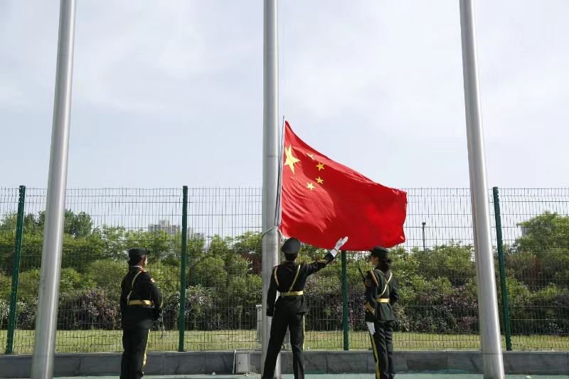 在灿烂的朝阳中,伴随着激昂的运动员进行曲,国旗护卫队、校旗队、彩旗队、裁判员代表队、16个学院学生运动员代表方队和26个教工分工会代表方队依次入场。各方队师生精神抖擞、神采奕奕,充分展现了昂扬向上的精神风貌,现场热闹非凡。精彩的舞龙舞狮表演、衣袂飘飘的《上春山》舞蹈、独具专业特色的“机器狗”表演等亮点纷呈的入场式燃爆全场。入场完毕后的升国旗仪式中,全体师生奏唱国歌,庄严肃穆地注视着五星红旗冉冉升起。