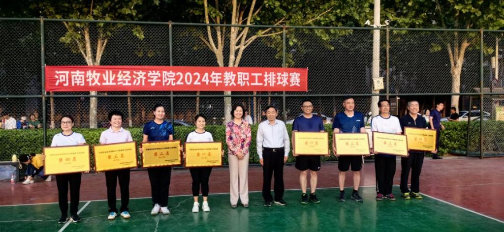 5月9日,由校工会主办、体育部承办的我校2024年教职工排球赛决赛暨颁奖仪式在龙子湖校区排球场成功举行。校党委副书记杨志清、副校长边传周莅临决赛现场并为获胜队伍颁奖。仪式由校工会副主席刘官生主持。体育部主任王国营宣读比赛成绩。