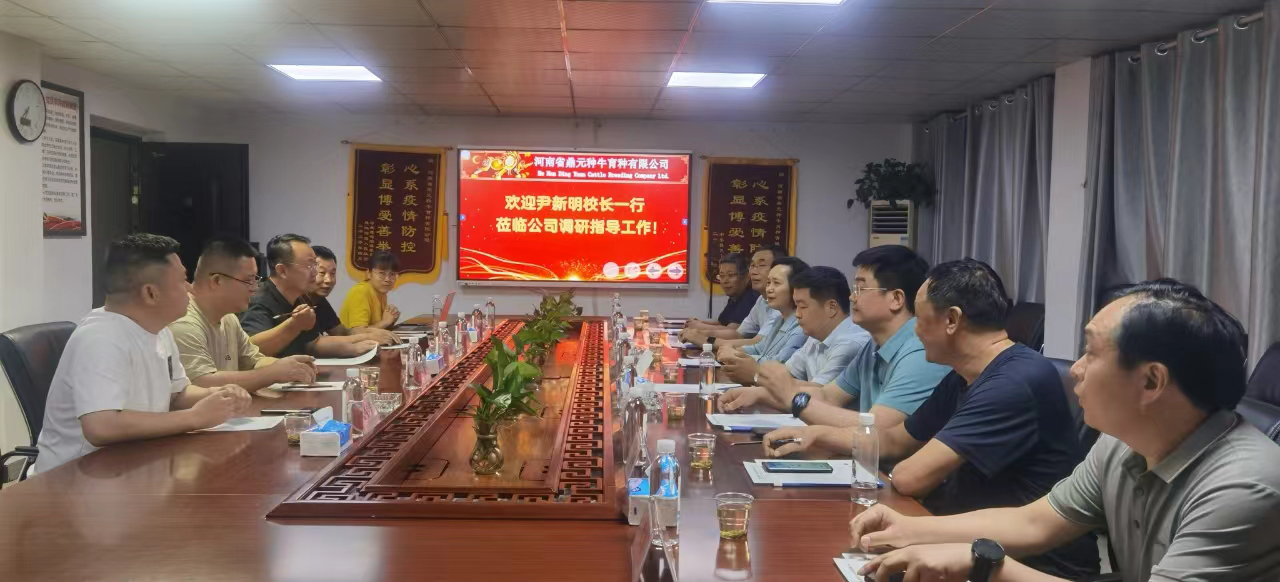校长尹新明一行与河南鼎元种牛育种有限公司召开访企拓岗座谈会