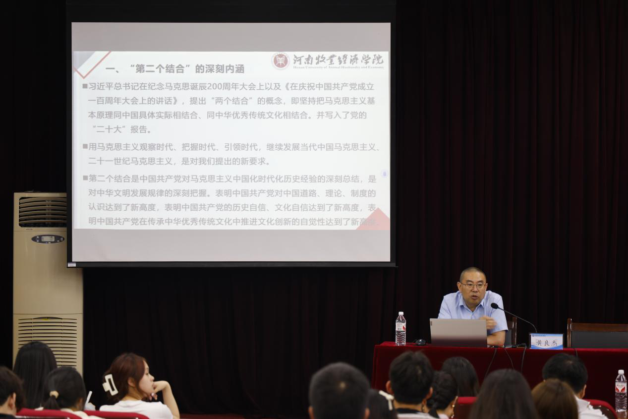 黄良杰从“第二个结合”的理论基础、深刻内涵、重大意义切入,以“何为成才、如何成才”为主线,带领师生回顾了习近平总书记在党的二十大报告中关于“坚持和发展马克思主义,必须同中华优秀传统文化相结合”的重要论断。他表示,青年学子要坚定文化自信、厚植爱国情怀,在全面建设社会主义现代化国家的关键时期,自觉担负起传承中华优秀传统文化和推动文化创新的历史重任。