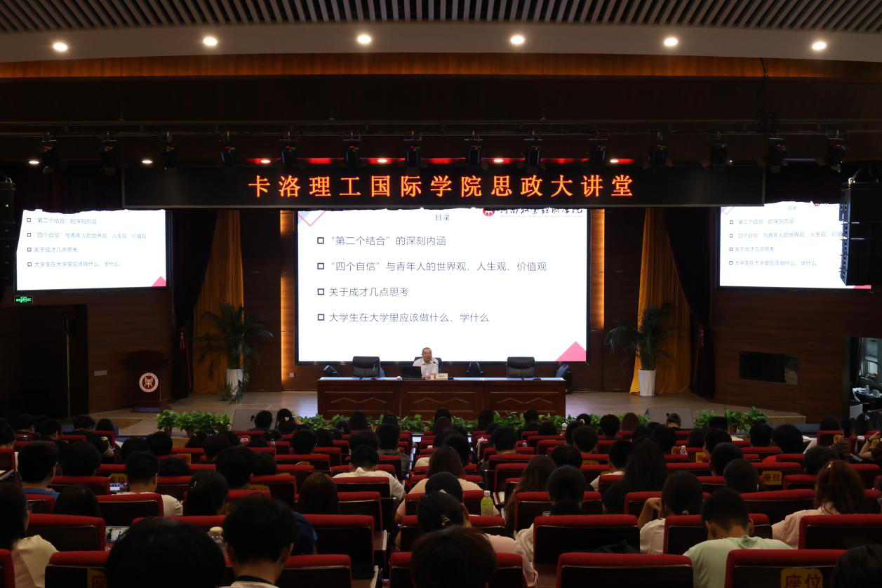 近日,副校长黄良杰以《“第二个结合”与成才之路》为题,为我校国际教育学院、卡洛理工国际学院师生讲授专题思政课,勉励广大青年学生自觉用习近平新时代中国特色社会主义思想武装头脑,努力把爱国之情、强国之志转化为报效祖国的实际行动。