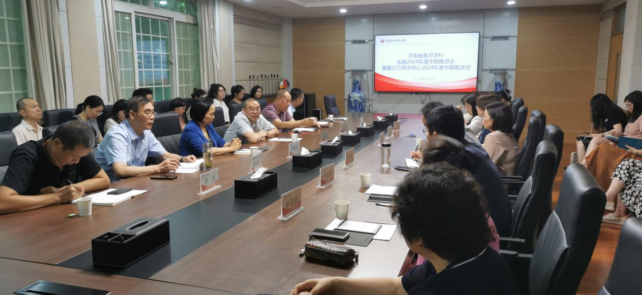 7月10日下午,我校新一轮河南省重点学科金融学科建设工作暨爱尔兰研究中心工作推进会议在英才校区教学办公楼113会议室召开。校长尹新明出席会议并讲话。副校长、金融重点学科带头人、爱尔兰研究中心主任黄良杰主持会议。