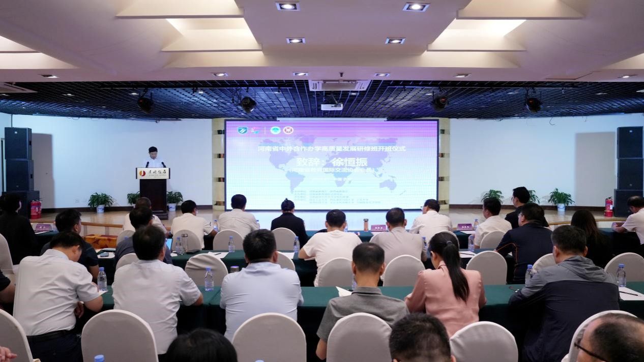 河南省教育厅对外合作与交流处一级调研员、省教育国际交流协会副秘书长陈兆武主持开班仪式。河南省教育国际交流协会会长徐恒振、陕西省教育厅对外合作与交流处副处长张亮分别致辞。