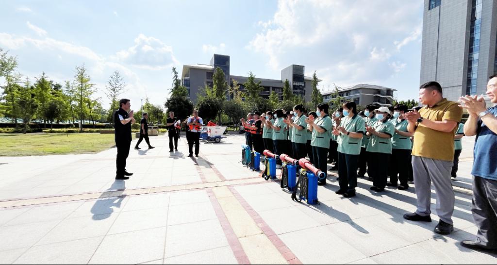本次演练模拟了图书馆地下室排水抢险、供电故障抢修、地源热泵雨水倒灌及暴雨后校园环境清洁消杀等场景。各应急保障小组各尽其责、有序组织、密切配合,出色地完成了防汛演练的各个环节。