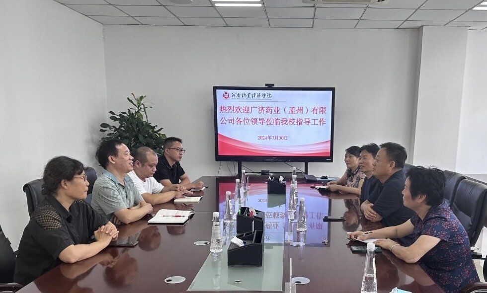 7月30日,广济药业(孟州)有限公司董事长胡勇干一行四人到校洽谈校企合作项目。校长尹新明、副校长席磊(焦作畜禽无抗技术推广服务团团长)出席洽谈交流会。畜产品质量安全技术研究院、继续教育学院、动物科技学院相关负责同志及教师代表参会。