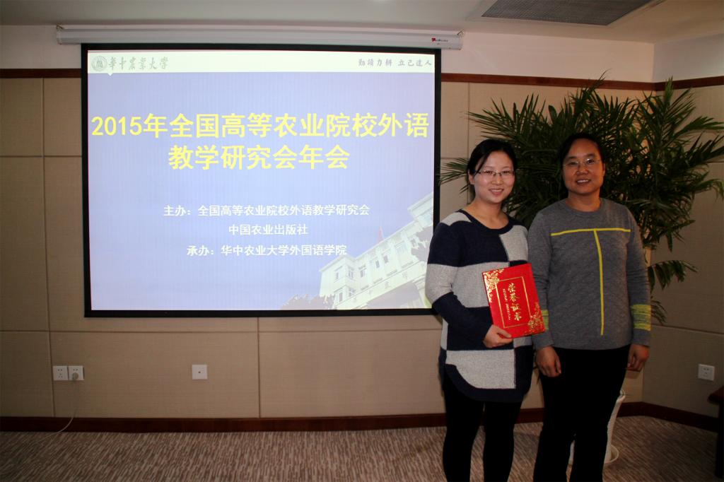 12月26日,首届全国高等农业院校英语讲课大赛暨2015年全国高等农业院校外语教学研究会年会在华中农业大学举办,我校公共外语教研部教师王琳代表学校参加比赛并荣获三等奖。