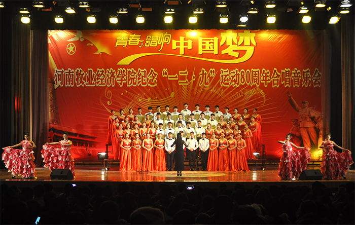 以爱国歌曲大合唱为主要形式的“一二•九”纪念活动是我校一项有着悠久历史传统和深厚群众基础的主题教育及校园文化活动。