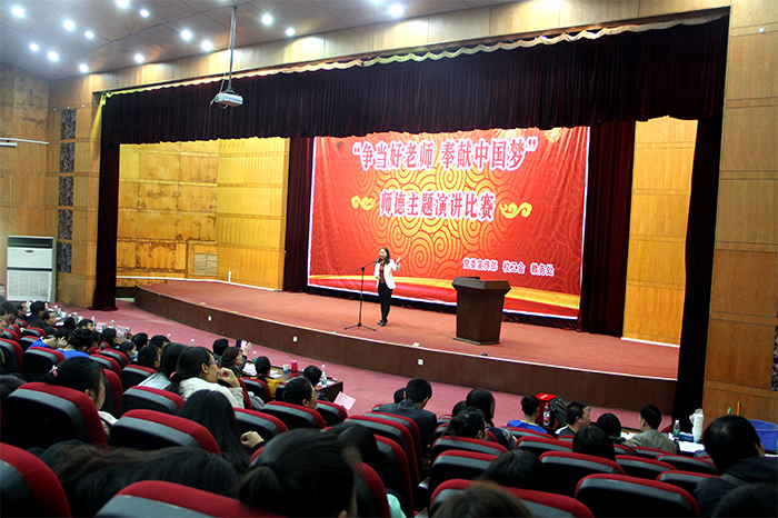 10月30日下午,我校“争当好老师 奉献中国梦”师德主题演讲比赛决赛在英才校区学术报告厅圆满落幕,从复赛中脱颖而出的12名选手参加了今天的决赛。校领导、各院系师生共500多人到现场观摩。经过激烈的角逐,制药工程学院的卢婷婷、文法系的张月获得一等奖;旅游管理系的王中雨等荣获二等奖;自动化与控制系的王语等荣获三等奖;动物科技学院的吴姣等获得优秀奖。