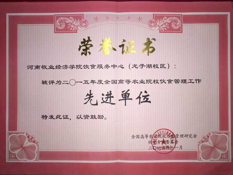 10月29日,在2015年全国高等农业院校伙食专业委员会研讨会上,我校饮食服务中心荣获2015年度全国高等农业院校伙食管理工作先进单位;程猛、钟辉两位老师荣获全国高等农业院校伙食专业委员会先进工作者称号。
