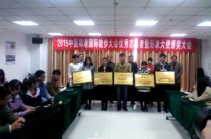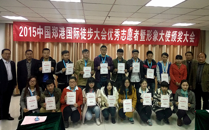 11月8日,2015中国郑港徒步大会优秀志愿者暨形象大使颁奖大会在郑举行,我校青年志愿者协会及郑州大学、华北水利水电大学等17所高校志愿者团体表现突出,成绩显著,荣获中国郑港国际徒步大会组委会和河南省志愿者联合会授予的“优秀志愿者组织奖”、“优秀志愿者团体奖”。