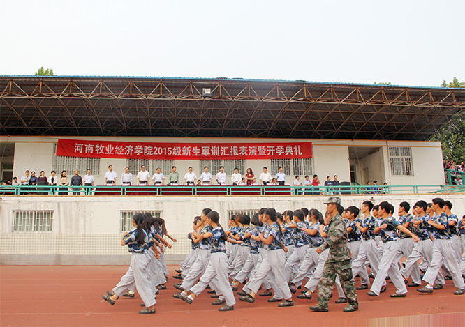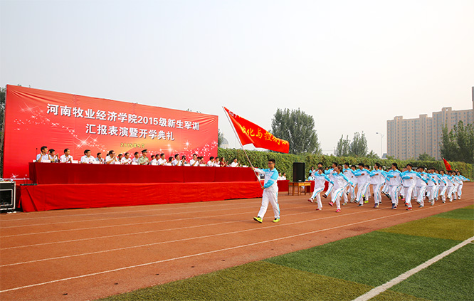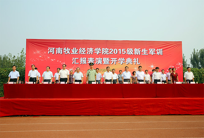 9月26日,碧空万里,秋阳明媚,我校2015级新生军训汇报表演暨开学典礼大会在英才校区和龙子湖校区分别举行。校领导王保国、李明中、曾照烨、李绍文、张卫宪、许圣道、张伟、陈艳、程慎、荆其增、田留栓和承训部队首长出席了大会。大会由校长办公室主任吕全建主持,学校各院系及相关职能部门负责人参加了大会。