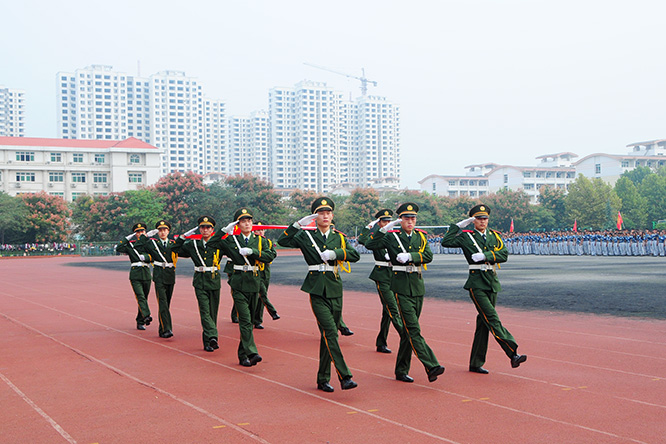 大会在庄严的升国旗仪式中拉开帷幕。参加分列式表演的各个方阵依次通过主席台,同学们迈着整齐的步伐,高喊着响亮的口号,精神饱满,军姿严整,赢得了学校领导和部队首长的赞扬。