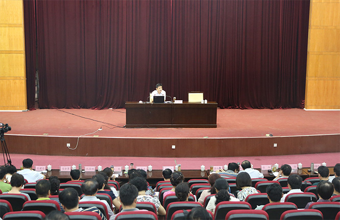 7月11日上午,英才校区学术报告厅凝重而富有生气,我校“三严三实”中心组集中学习和处级干部培训班第四讲在这里如期举行,校党委副书记、副校长曾照烨以《构建应用型本科教育教学体系的若干思考》为题作专题报告,校领导、党委委员、校区管委会主任、学校全体处级干部参加会议。