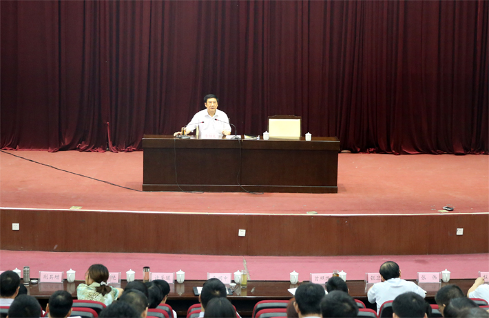 7月12日上午,学校“三严三实”中心组集中学习和处级干部培训班在英才校区学术报告厅持续进行,校党委副书记李绍文为我校全体处级以上干部作了题为《践行三严三实 促进融合发展》的专题辅导报告。