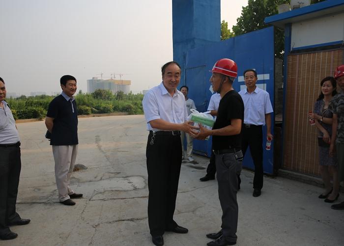 7月31日下午,河南省教科文卫体工会主席符明轩、副主席王学会莅临我校龙子湖校区,看望慰问了坚守在建设一线的工人们。校党委副书记李绍文、副校长程慎、工会主席田留栓出席慰问座谈会,校工会及新校区建设指挥部的有关负责同志参加慰问活动。慰问座谈会由田留栓主持。